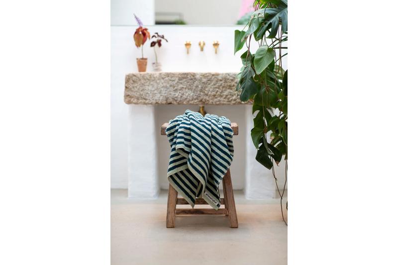 aus 600 g/m² gekämmter Bio-Baumwolle, OEKO-TEX® zertifiziert, die Doppelfadenbindung und die extralangen Baumwollfasern machen das Handtuch sehr saugfähig, langlebig und sehr weich.