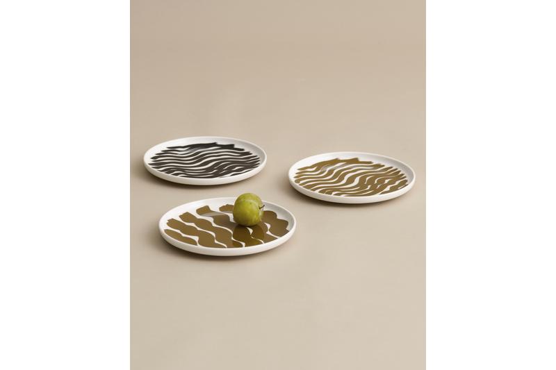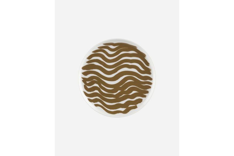 Das abstrakte Hyräily (Summen) von Maija Louekari wurde mit einem dicken Pinsel von Hand gemalt. Dieses streifenförmige Muster, das mit einer lockeren Hand gemalt wurde, folgt dem Rhythmus des Summens.