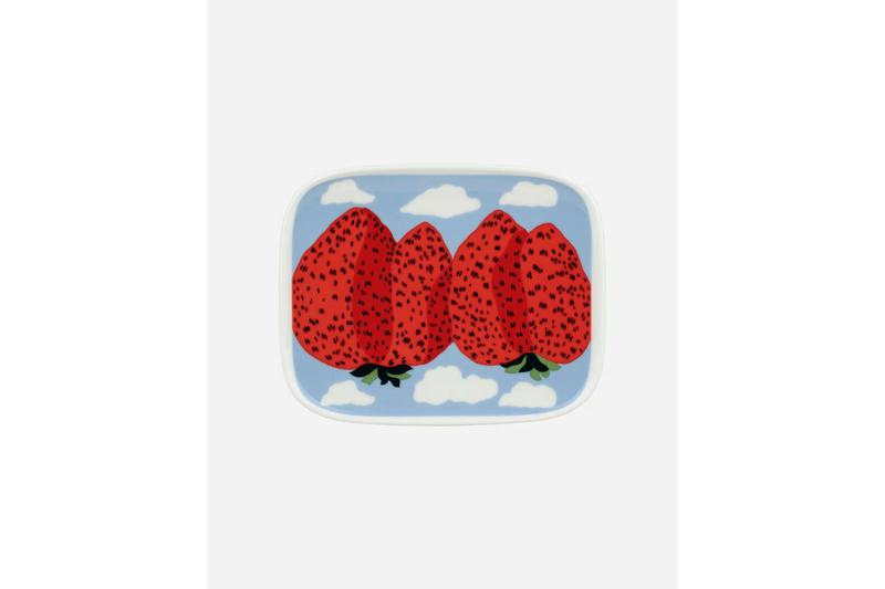 Ein fantastischer Druck, inspiriert von der Musik der Beatles. Maija Isola entwarf diesen Stoff 1969, nachdem sie den Song "Strawberry Fields" gehört hatte. Wunderschön umgedrehte Erdbeeren, die wie eine riesige Bergkette aussehen.